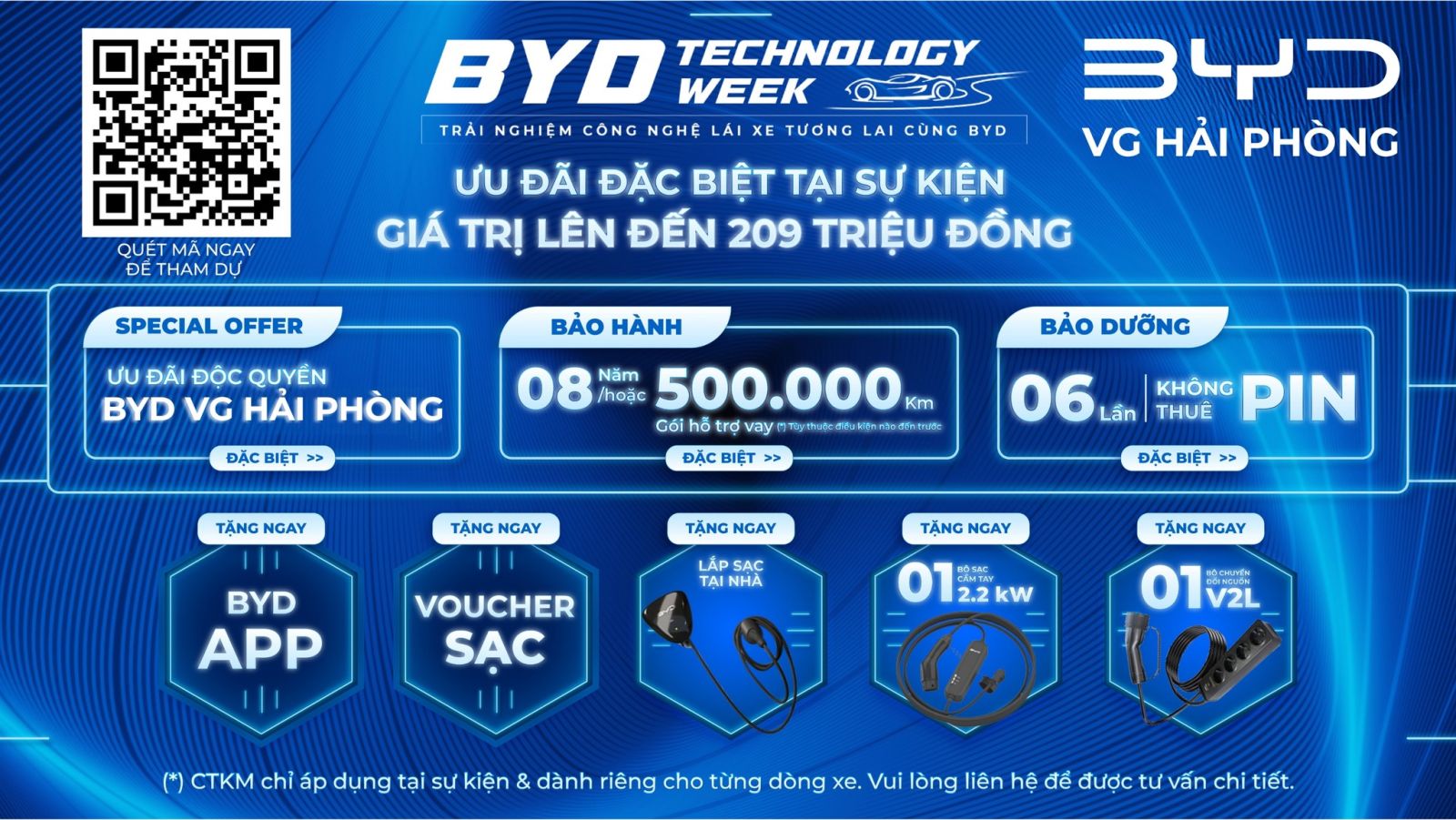 Để đảm bảo công tác đón tiếp, phân luồng trải nghiệm và quyền lợi quà tặng, khách hàng vui lòng đăng ký trước qua mã QR trên các ấn phẩm truyền thông hoặc tại đường link đăng ký trực tiếp do BYD cung cấp.